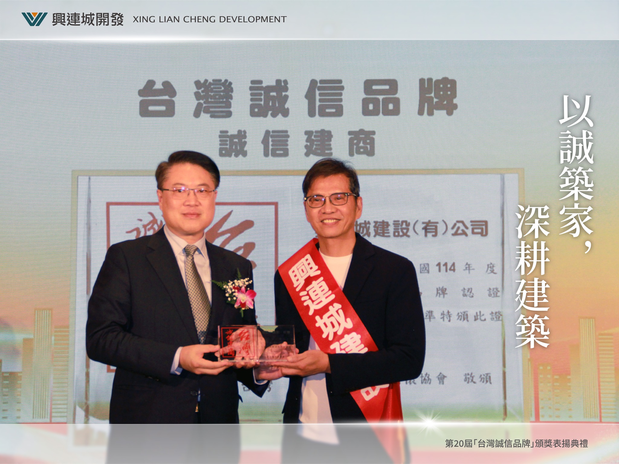 蟬聯兩年 榮獲台灣誠信建商獎